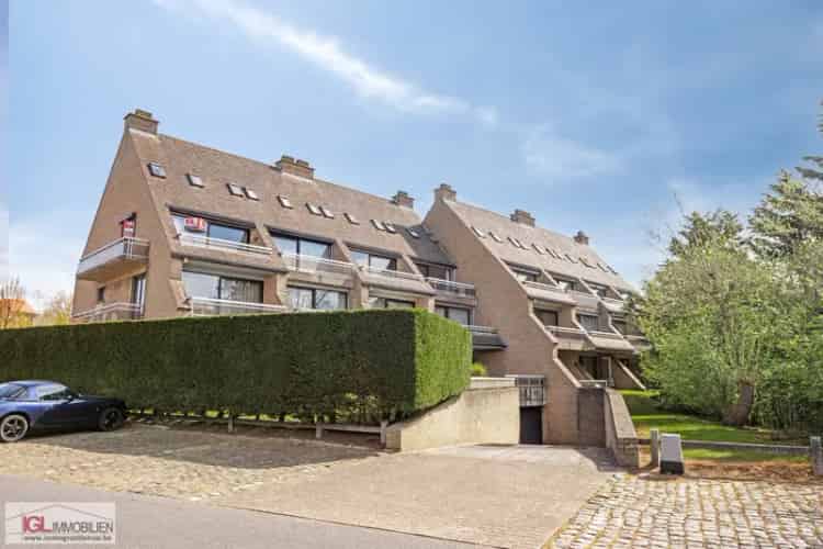 Inkomhal met vestiaire en apart toilet, ruime woonkamer 37m² met open keuken (kookplaat, dampkap, koelkast), slaapkamer 15m² met...