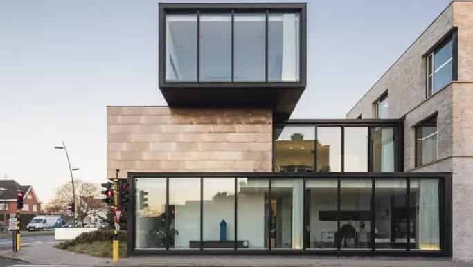 Hypermodern, ingericht en instapklaar kantoorgebouw te koop te Roeselare met veel uitstraling en grote zichtbaarheid gelegen op een drukke invalsweg.