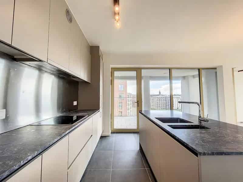 Lichtrijk appartement te huur op de 11e verdieping van gebouw Dayton aan Tour & Taxis. Dit appartement biedt 2 slaapkamers, hoge plafonds en een zuidgericht terras met een adembenemend uitzicht over Brussel.